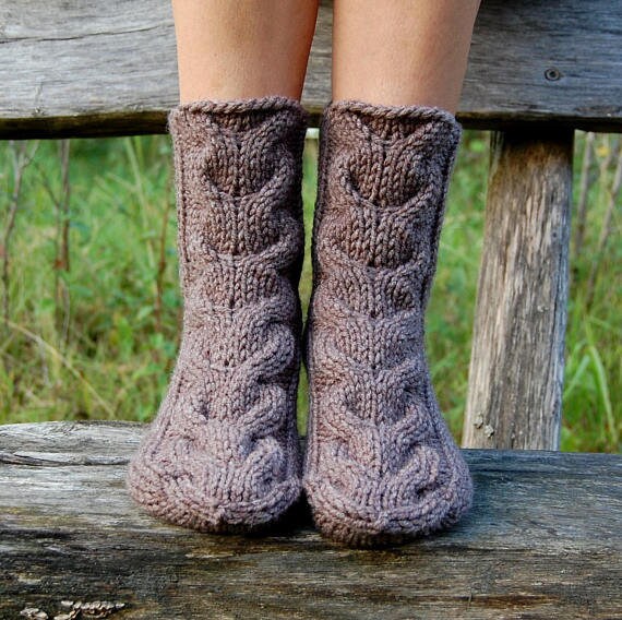 Slipper Socks Knit Chunky Slipper Socks Cable Knit Slipper Etsy
